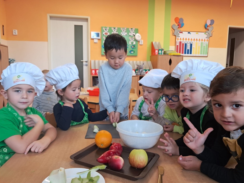 Děti ze třídy Myšiček si zahrály na malé kuchaře a připravily si chutný ovocný