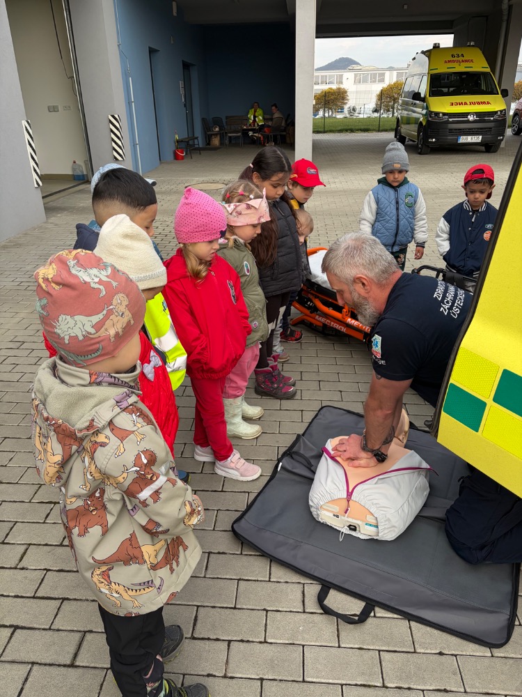 Sirény, modrá výstražná světla a spousta zajímavých přístrojů. Děti z naší mateřské školy prožily dopoledne plné zážitků, když se vydaly na návštěvu za opravdovými záchranáři na jejich základnu v Lovosicích. Pro děti bylo obrovským dobrodružstvím už jen to, že mohly nahlédnout do budovy, kde záchranáři drží své služby. Největší hvězdou dne se ale stala sanitka. Malí zvědavci si mohli prohlédnout auto zevnitř a zahoukat si sirénou. Záchranáři dětem trpělivě ukázali a vysvětlili fungování nejrůznějších přístrojů – od defibrilátoru přes monitory životních funkcí až po vybavení pro transport pacientů.