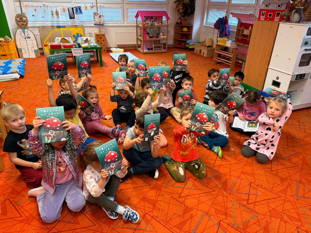 V naší mateřské škole proběhla beseda s manželi Skřivánkovými, kteří přišli představit svoji knihu Pohádky na houby. Seznámili nás se všemi houbičkami, které v knize jsou. Děti stavěly puzzle, moc hezky spolupracovaly, tiše naslouchaly při čtení ukázky z knihy i při povídání o tom, jak se urodil nápad vydat knihu. Pozorně sledovaly, jak vznikají ilustrace. Samozřejmě nemohly chybět ani soutěže, při kterých jsme si společně ověřili, kdo nejlépe pozná houby a ocenili největšího houbičkového experta. Na závěr děti dostaly samolepky a každý svoji knihu Pohádky na houby. Bylo to pěkné dopoledne plné smíchu a radosti.
