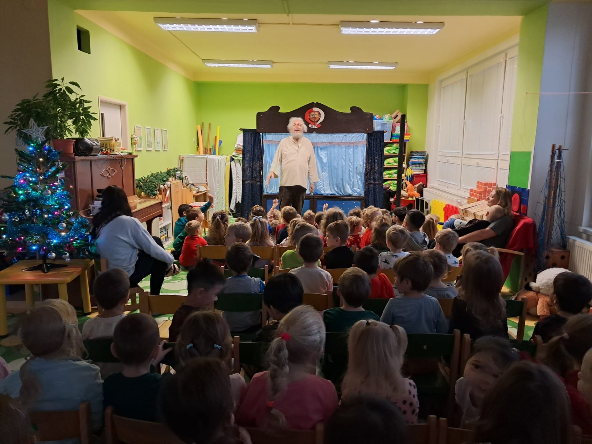 Do naší mateřské školy zavítalo Sváťovo dividlo, které dětem přivezlo krásnou vánoční pohádku Jak pejsek a kočička slavili Vánoce. Veselé a poučné představení plné humoru, písniček a známých postaviček děti velmi zaujalo a po celou dobu jej sledovaly s nadšením.