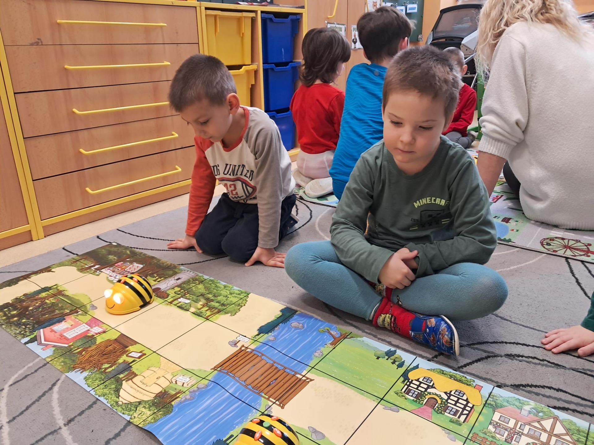 -práci s Bee- bot včelkami, učily se jednoduché programování podle pokynů.